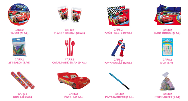 20 Kişilik Cars 2 Lüks Set