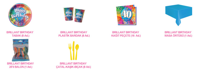 8 Kişilik 40 Yaş Brilliant Birthday Ekonomik Set